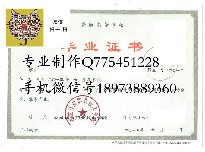 安徽林业职业技术学院毕业证样本