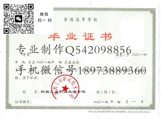 陕西工业职业技术学院毕业证编号前五位、学校国际代码:10828。