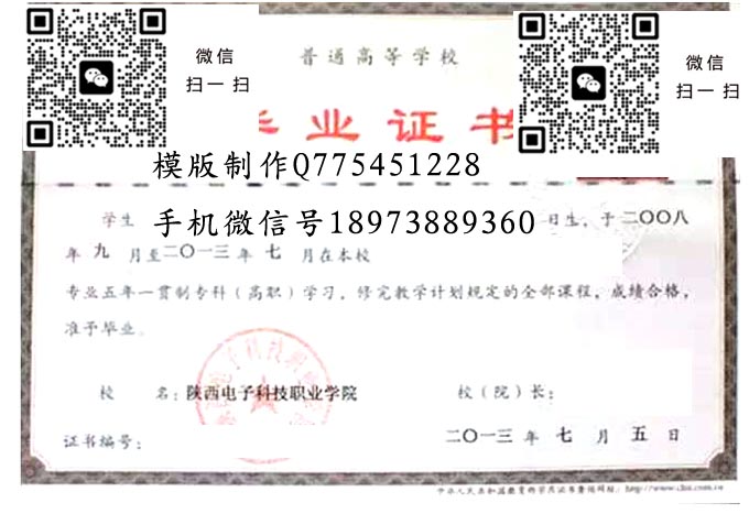 陕西电子科技职业学院历年毕业证样本
